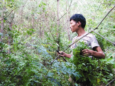Theo chân một người trung niên dân tộc Dao, chúng tôi ngược núi, tìm cây. Anh ta thoăn thoắt bới từng góc núi, rồi reo lên, giới thiệu: “Cây cút mây như những dây tơ hồng chằng chịt vắt ngang ngọn cây, bò dưới đất, lan vào các khe đá. Vậy nên, lấy được cút mây, phải kéo đổ hàng loạt cây khác”. Theo tính toán của anh Đ., người có thâm niên đi rừng kiếm dược liệu, hiện một cân cút mây có giá trên 2 ngàn đồng. Mỗi ngày may mắn cũng kiếm được 25 cân. Thấy được tiền, dân đi từng đoàn lên núi như duyệt binh.