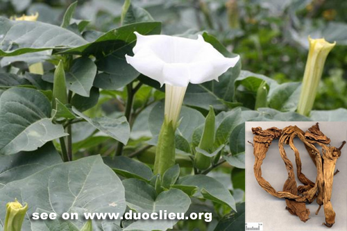 2. Epigastric and abdominal pain, wind-damp obstruction pain and pain due to external injuries. Datura flower (Yangjinhua) is used alone or with Chuanxiong rhizome (Chuanxiong)
