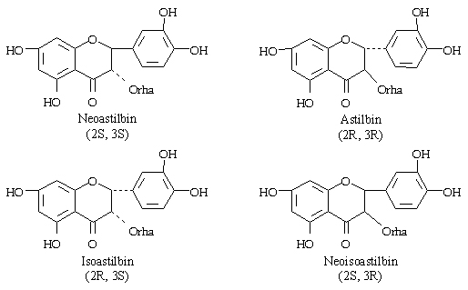 Những dẫn chất của taxifolin hay gặp nhất. Đặc biệt chất taxifolin 3-rhamnosid với đồng phân (2S, 3S) (=neoastilbin) có vị ngọt còn các đồng phân còn lại không có vị ngọt. Khi đun nóng một dẫn chất dihydroflavonol trong môi trường acid thì có sự chuyển đồng phân và tính quang hoạt có thể mất.