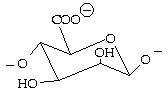 Ở một số tảo nâu cũng có polysaccharid thuộc nhóm acid: acid alginic. Acid alginic cấu tạo bởi các đơn vị acid guluronic và acid mannuronic. Dây nối giữa các acid là b-(1®4), phân tử lượng trung bình khoảng 200.000. Tỉ lệ giữa các          acid uronic thay đổi tùy theo nguồn gốc. Tỉ lệ giữa acid mannuronic/guluronic là        1,56  ở tảo Macrocystis pyrifera, 1,85 ở Ascophyllum nodosum, 0,45 ở Laminaria hyperborea. Chuỗi phân tử polysaccharid không đồng nhất. Qua sự thủy phân từng phần, người ta xác định có 3 kiểu sắp xếp trong phân tử, có đoạn là polymannuronic, hoặc polyguluronic hoặc xen kẽ giữa 2 acid. Ở trong tảo các acid ở dạng muối hỗn hợp (Na, Mg, K, Ca).
